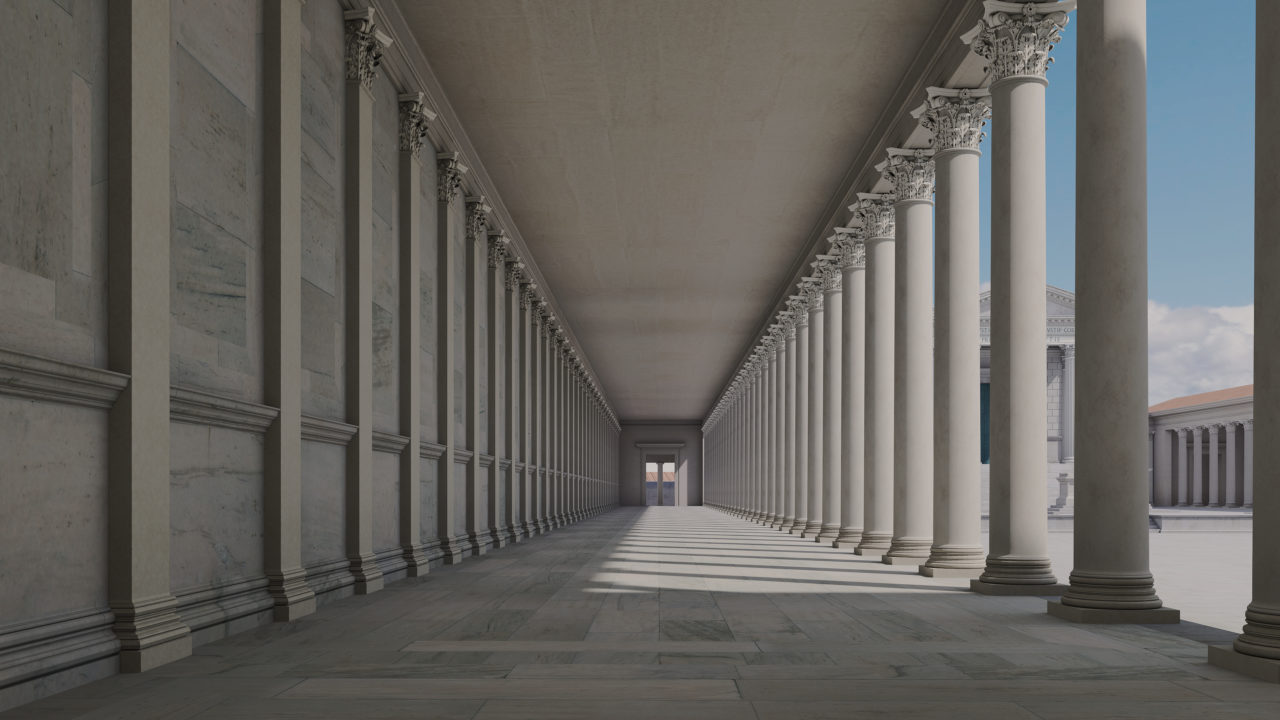 Vue du forum de Nîmes 22 juin 2019 • 1280 × 720 • Vue du forum de Nîmes Vue du forum de Nîmes, depuis le portique est. © archeo3d Vue du forum de Nîmes, depuis le portique est. © archeo3d