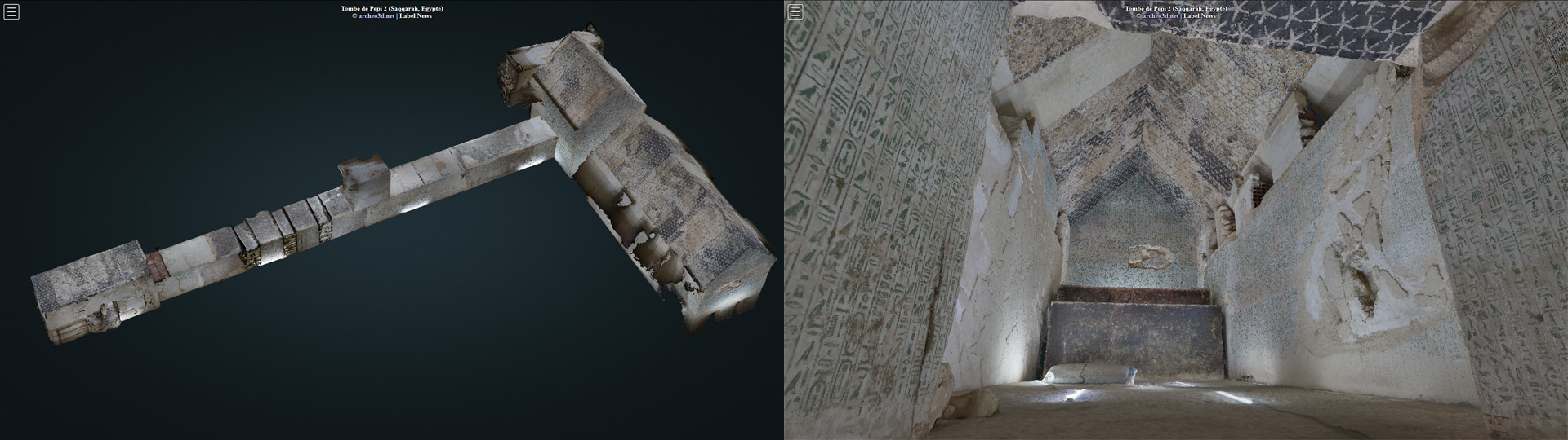 Pépi II 3D 11 janvier 2020 • 1920 × 540 • Pépi II 3D Modèle photogrammétrique de la tombe de Pépi II Modèle photogrammétrique de la tombe de Pépi II
